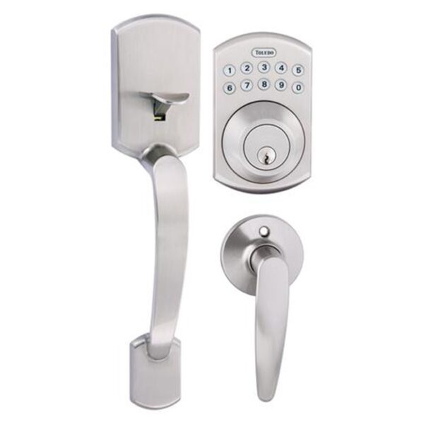 Toledo Electronic Stainless-Steel Handleset is a combination of the latest technology and traditional craftsmanship. Suitable for all standard distances between the handle and the door edge (wood as well as metal) from 1-3/8 to 1-3/4 inches thick (35mm to 45mm).