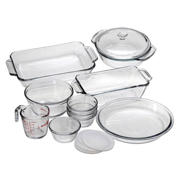Impress family and guests for many years to come, with the Anchor 82210l20 15 Pc. Oven Basics Bake Set. Ideal for festive occasions and perfect if you love baking! This tempered glass bakeware set is microwave, pre-heated oven, refrigerator, freezer, and dishwasher safe; plastic lids are BPA-free and safe to clean on the top rack of the dishwasher. Anchor Hocking baking glass is healthier than metal and plastic. It will not warp, stain, retain smells, or leach dangerous chemicals into food.