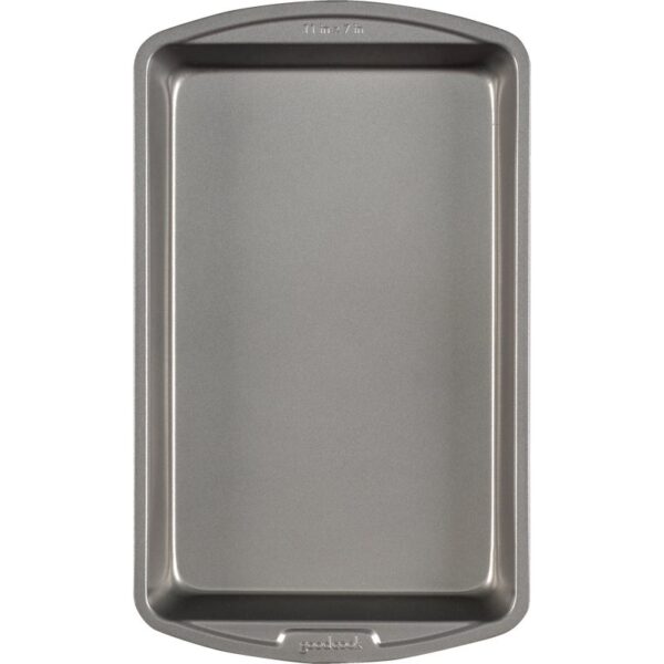 Rectangular steel biscuit and brownie pan is designed to distribute heat evenly and quickly to prevent hotspots or burnt edges. Premium non-stick coating helps to resist scratching and allows for effortless food removal and easy cleaning.