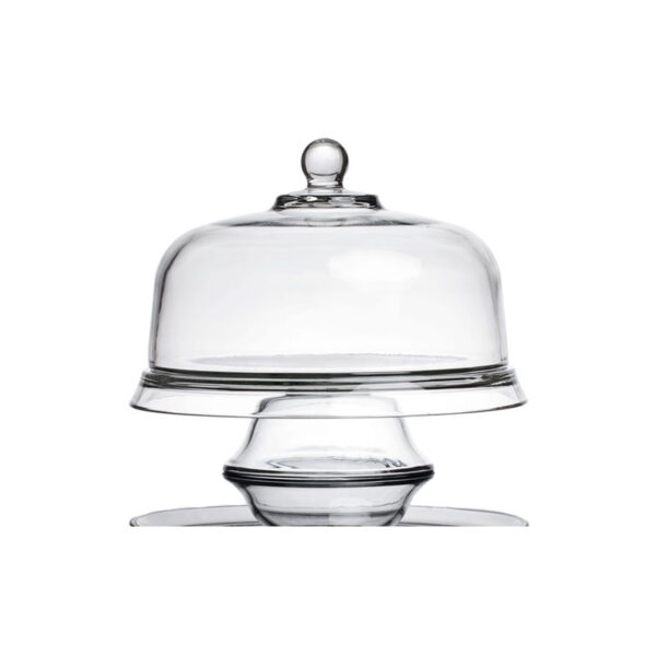 Anchor presence 4-in-1 serving set. Serve baked treats and snacks in style with this Anchor Hocking Presence 4-in-1 Cake Set Dome and Platter. This versatile piece can be used for a range of applications. You can use it for cakes and cupcakes, chips and dips and even as a punch bowl. This Anchor Hocking cake set has a high dome and the elegant shape can complement a range of table settings.