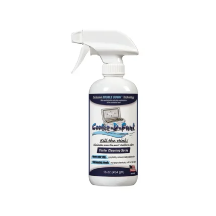 The Ardent D-FUNKCOOLERBT Cooler-D-Funk Cooler Cleaning Spray effectively cleans your cooler and effectively removes foul odors. This spray also removes mold, mildew, fish, and game smells and works great for cleaning refrigerators and deodorizing plastic containers.