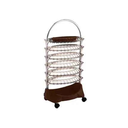Dompel Manicure Nail Polish Trolley Display Organizer has 6 trays to store your nail polish, gel polish, nail art tools, and other manicure accessories. This trolley has wheels and a telescopic handle for easy mobility, making it ideal for mobile nail technicians, beauty salons, and spas. The trolley features a lockable lid and durable construction, ensuring that your nail polish and tools stay safe and secure during transport.