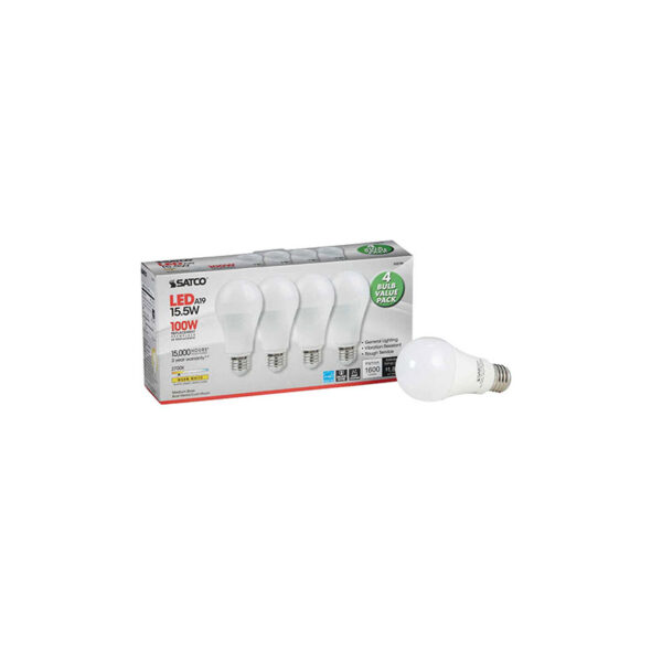 Satco 100W Equivalent Warm White A19 Medium LED Light Bulb 4Pk