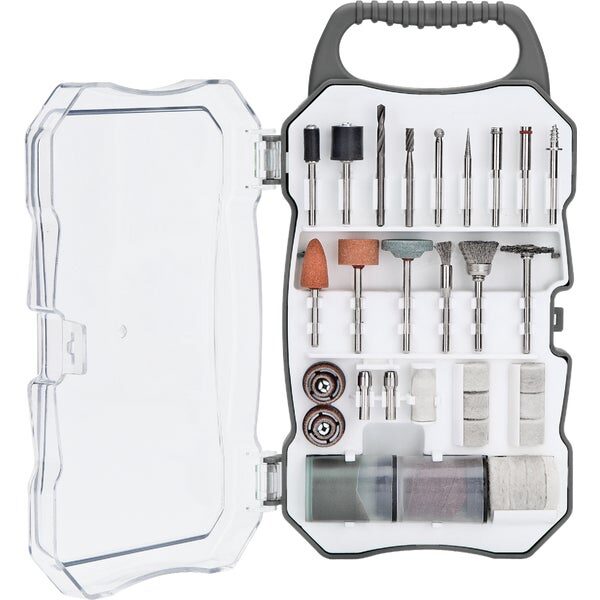 Complete start-up kit offering the breadth of accessories helpful for a wide assortment of tasks. Ideal for cutting, sanding, polishing, grinding and carving. Comes with re-usable storage case and 160 accessories.
