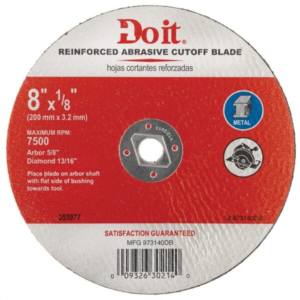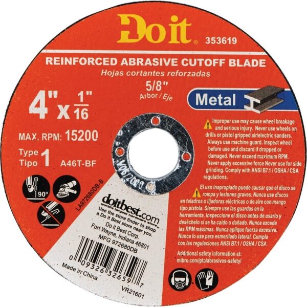 Type 1 cut-off discs provide superior performance and increased productivity. Featuring a premium aluminum oxide blend, a superior quality formulation designed for fast material removal and long cutting life. For use on metal applications: steel, stainless, cast iron, sheet metal.