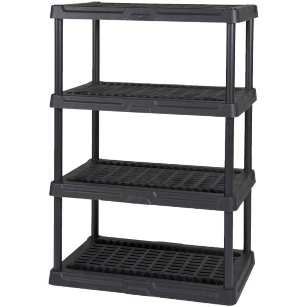 Contico 4-Tier Ventilated Plastic Shelving. Elevated from the floor for garage or outdoor use.