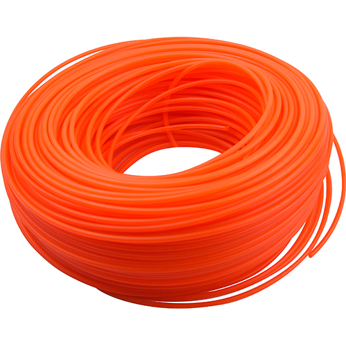 Brown USA grass trimmer line uses a monofilament line to cut through grass, weeds, and small, woody plants. By spinning at a high speed, a cutting head generates enough centrifugal force to hold the line out at a stiff, horizontal angle, making cutting possible.