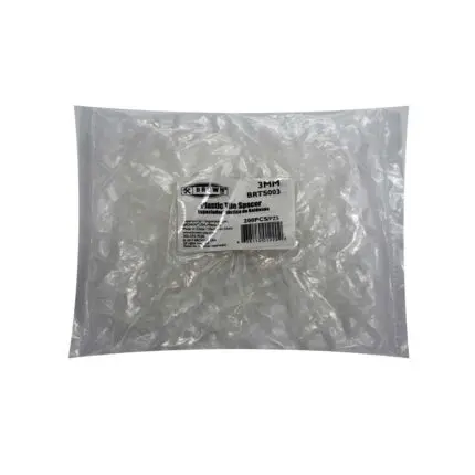 Traditional flexible tile spacers maintain consistent grout joints and align tiles when installing floor or wall tiles. These spacers are made from flexible plastic, which allows for slight compression as needed during tile installation. Reusable and compatible with various tile types. The package contains 200 spacers.