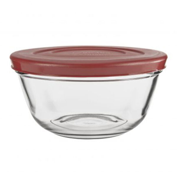 Anchor Hocking (91857L20), Glass Food Prep Mixing Bowl with Cherry Lid, 2.5 Quart. Whisk, stir, blend and mix, then store, reheat and place it in the dishwasher to clean.
