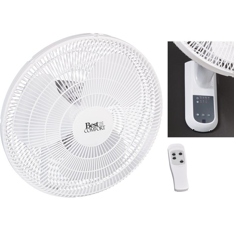 Best Comfort 16 In. 3-Speed White Oscillating Wall-Mount Fan