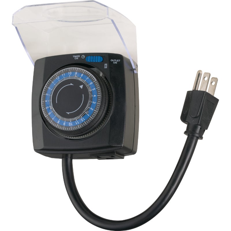 24-hour mechanical timer controls outdoor lighting, holiday decorations, and fountains to give your home that live look.