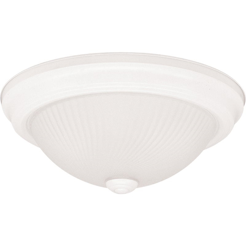 Home Impressions 13 In. White Incandescent Flush Mount Ceiling Light Fixture with Frosted Swirl Glass.