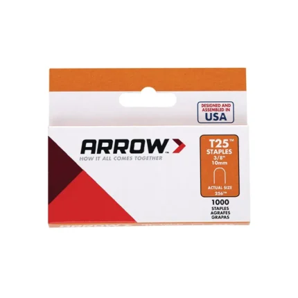 Arrow T25 Staples are heavy-duty steel staples designed for reliable fastening in upholstery, insulation, and general construction applications. its precision-engineered size provides strong holding power in wood and other dense materials making it compatible with Arrow T25 staplers.