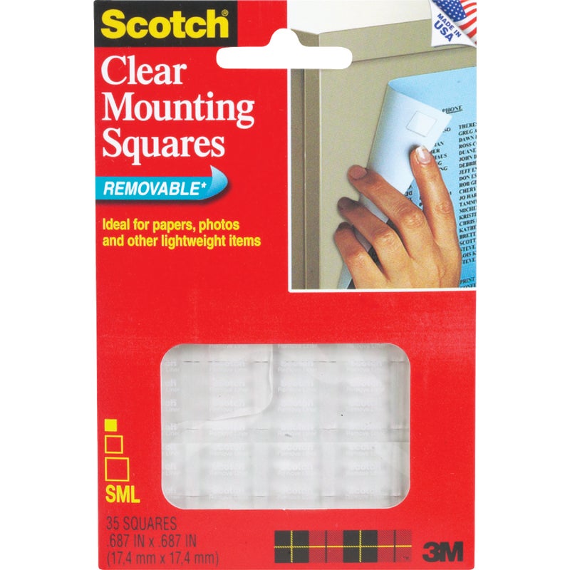 Clear removable double-stick mounting squares. Holds securely, removes cleanly and easily from most objects, re-position, and re-stick. Ideal for papers, photos, and other lightweight items. Won’t stain walls. For use on metal, glass, wood, plastic, and almost all smooth surfaces. Holds up to 1-pound. 35 squares, 0.68-inch x 0.68-inch.