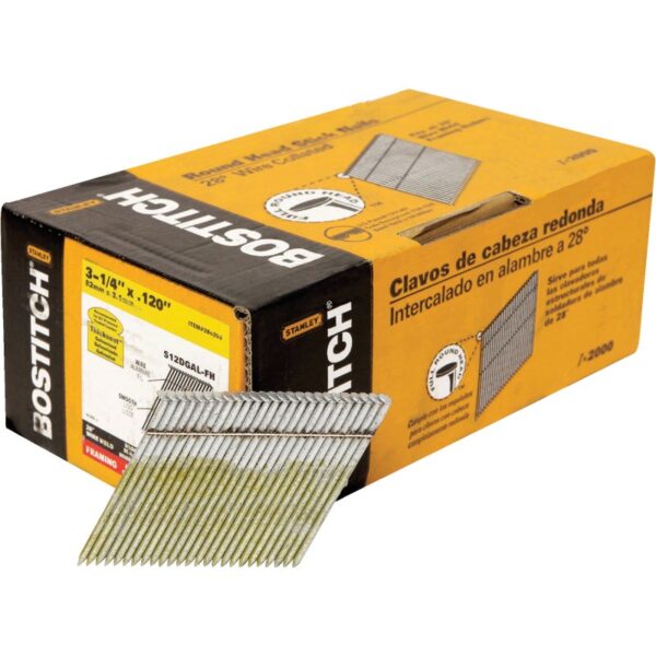 Bostitch 28 Degree Wire Weld Galvanized Offset Round Head Framing Stick Nail, 3 In. x .120 In. (2000 Ct.)