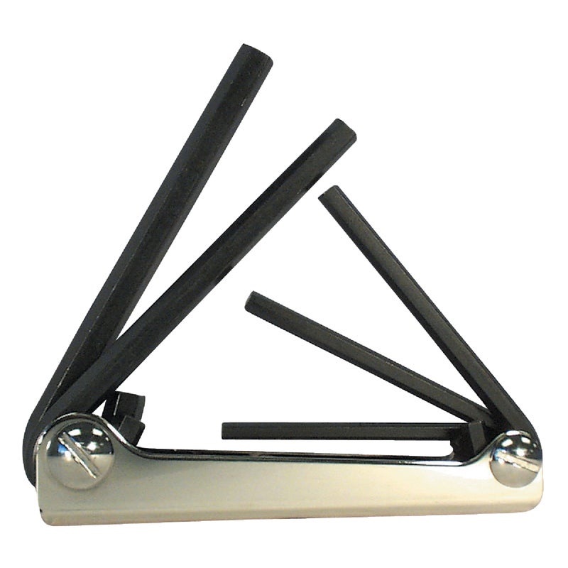 Best quality chrome nickel alloy steel. Hardened and tempered for maximum life. Ends are beveled, slip easily into screws. Wrenches easily replaced by removing a single bolt; snap into right angle position, can be used at any angle. Folds up like knife. 5-1/4″ long handle fits the hand; easy-to-grip and turn. Sizes include 3/16″, 7/32″, 1/4″, 5/16″, 3/8″.