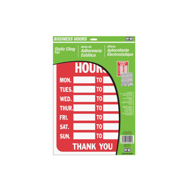 Hy-Ko Business Hours Window Cling Sign Kit 8.5 x 12 Inch