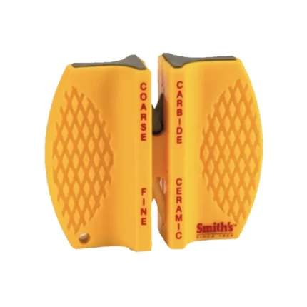 Smith’s 2-Step Knife Sharpener features two tungsten carbide blades with pre-set angles to ensure the perfect edge every time. Three or four strokes through the carbide sharpening slots will restore the edge on a very dull knife.