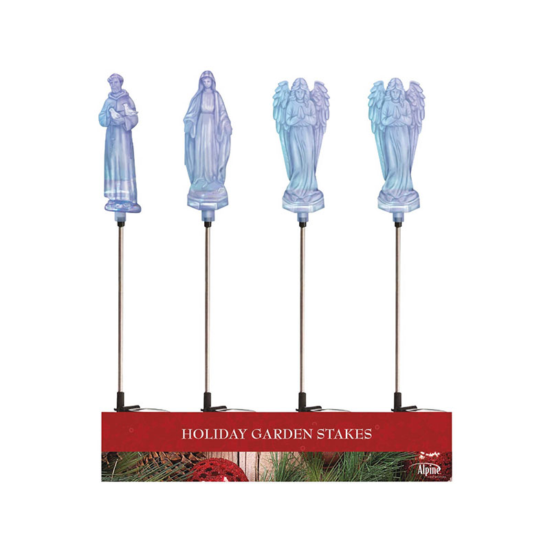 Alpine 34″ LED Solar Iridescent St Francis/Mary/Angel Holiday Garden Stake