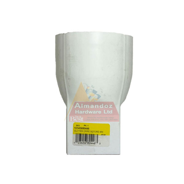 Used to facilitate the collection of rain water from rooftop, this connector converts a square shaped downpipe to a round one. Constructed from PVC material for durability and corrosion resistance, it easy to install and an important part of a guttering system.
