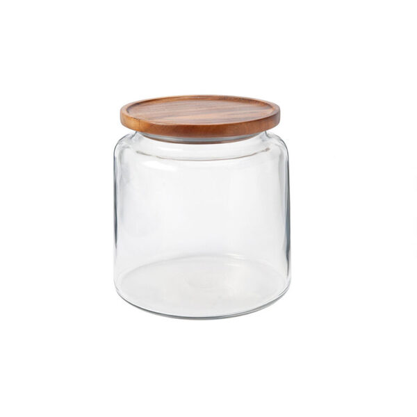 Keep your flour, pasta, coffee grounds, or tea safely stored in your kitchen with this Anchor Hocking Montana 64 oz. mini jar! It can hold your cooking ingredients so that they are easily accessible. It features a flat acacia lid that fits snugly to keep your food safe and for easy accessibility. This jar is made from clear glass so you can easily see its contents. The glass construction also will not absorb odors or stains. Plus, the jar features a classic mini-round design. Use this in your kitchen to keep your condiments and cooking equipment easily accessible.