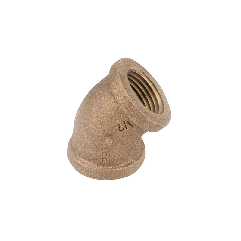 45 deg. low lead solid threaded elbow. Female iron pipe x Female iron pipe. Rough brass. Import. Manufactured to include no more than 0.25% weighted average lead content on wetted surfaces.