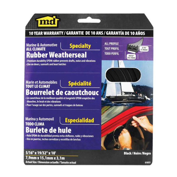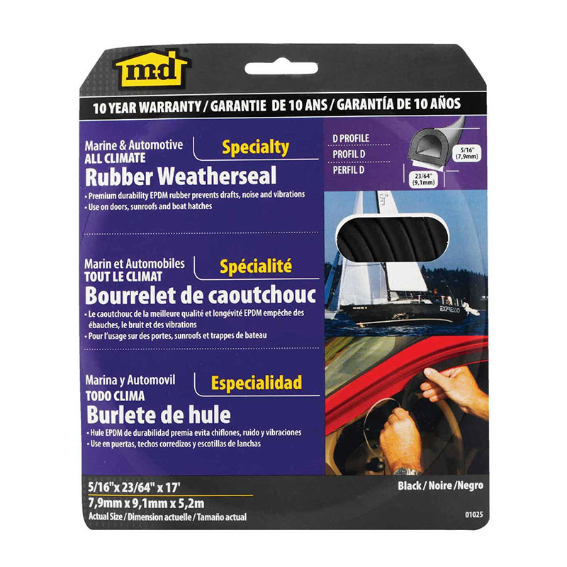 M-D Auto & Marine Rubber Weatherseal 5/16 Inch x 19/32 Inch x 10 Inch