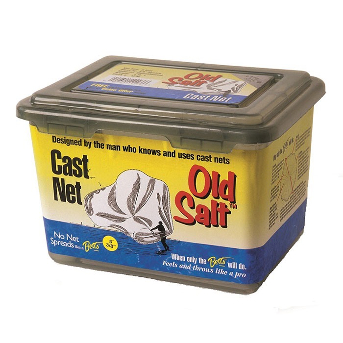 Betts Old Salt Premium Cast Net for Bait Fish is ideal for Bait fishing and comes with a utility box for storing lures, hooks, tools and other supplies. Cast easily with this net and catch plenty of bait with its full spread.
