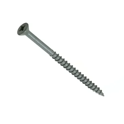 PrimeGuard Plus ceramic finish coat with galvanized base. Combination drive, extra coarse thread screws with high corrosion-resistant, long life coating. The screw color is similar to the color of treated wood. Compliant for treated lumber. Type 17 drill tip drives into wood without pre-drilling. Thread pattern reduces wood splitting and friction. For all exterior applications, including decks, docks, fences, and gazebos.