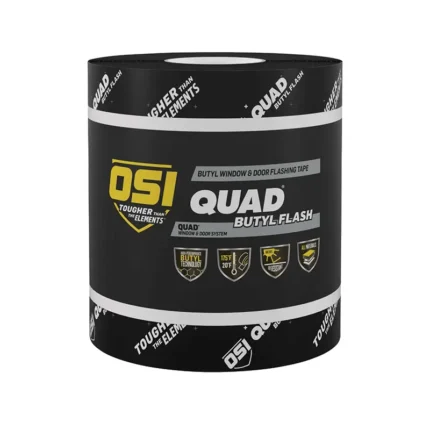 OSI QUAD Butyl Flash flexible flashing is a rubberized butyl backed, self-adhering flashing. It is efficient, easy to use and provides excellent moisture and air infiltration protection around windows.