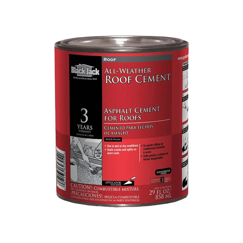 Black Jack all-weather roof cement is an asphalt based patching compound designed to repair cracks, seams, and holes in roofing materials.