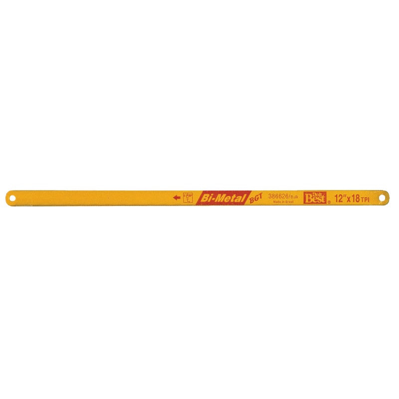 Safe and shatterproof. Hardened high-speed steel cutting edge is electron beam welded to spring tempered alloy steel back. Use for cutting pipe, conduit, bar and rod, aluminum, copper and steel. 12" L. x 1/2" W. x .025" thick.
