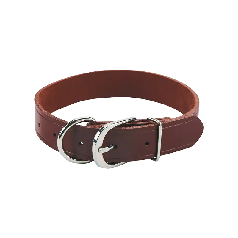 Genuine, high-quality durable leather hunting style collar. Simple, elegant design. Includes chrome hardware for classic good looks.