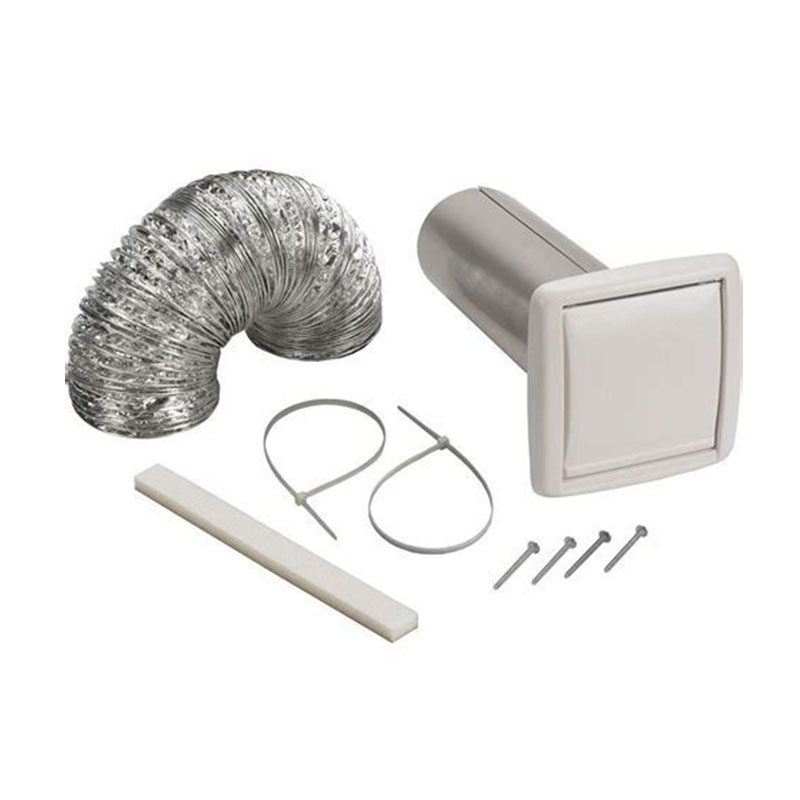 The Broan Wall Vent Ducting Kit is the perfect easy-to-install vent for a kitchen or bath exhaust fan. It will work with 4 in. ductwork and includes a 3 in. to 4 in. adapter for convenience. The kit also features a 2-poly metallic laminate flexible duct and a white polymeric-louvered wall cap.