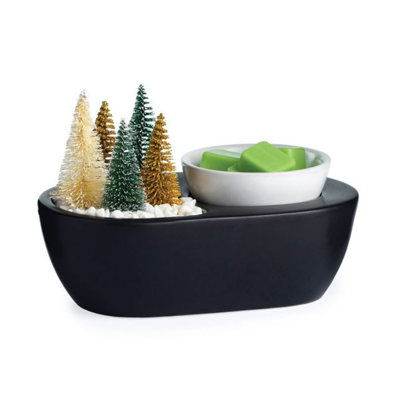 This ceramic warmer is designed with your home decor in mind with its shimmery, bottle brush forest popping up from a snowy-white stone field. It features a trend-focused décor incorporated with a wax warmer, giving you more style with your home fragrance.