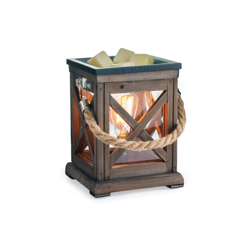 Illumination Fragrance Warmers are designed with your style in mind to accent your home decor. This classic lantern is made from espresso washed wood and accented with a rustic rope handle. The traditional x-pattern tops off a slightly coastal feel. Create the ambient glow of a burning candle. Includes NP3 Vintage Bulb. It comes with a 3 foot cord with an ON/OFF switch. Feature a removable dish that is easy to clean and replace wax.