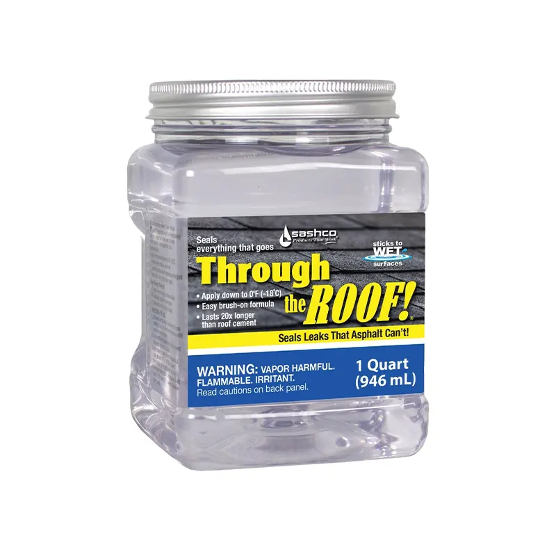 Through the Roof! is the clear, ultra-elastic sealant made to permanently stop and prevent roof leaks. It effectively seals around a variety of roof fixtures without the messy look of asphalt.
