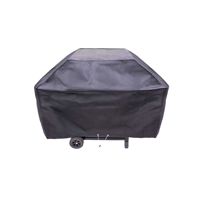 3 to 4 burner basic grill cover. Provides ultra violet protection for fade resistance and has a drawstring for a secure fit. Designed to fit large charcoal grills and smokers up to 62 inches long. Made of 14 mil thick vinyl (PE) fabric.