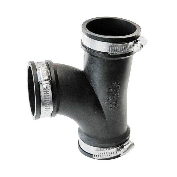 This flexible repair tee is only suited for drain, waste, and vent use. Its flexible neoprene rubber allows a variety of take-off angles. Used to repair or alter drain, waster, or vent pipe and fittings. Fits cast-iron, steel, plastic, lead, and copper pipe. Especially suited for in-wall or other limited space connections. Extra length allows easy replacement of elbows or tees cut out at joint.