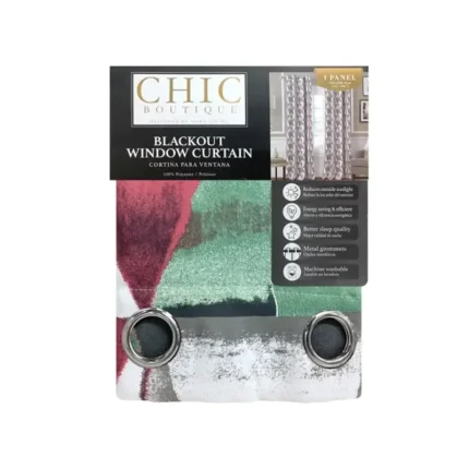 Chic Boutique Blackout curtain is the perfect choice when matching functionality with your decor. Grommet rings make the curtain easy to hang and slide smoothly. Perfect for late sleepers and afternoon naps these curtains, insulate against heat to balance your room temperature, reduce outside sunlight, protect the floor and upholstery from color shading. 1 Panel. 100% Polyester.