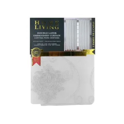 Home Living Double Layer Embroidery Curtain White 54×90 Inch