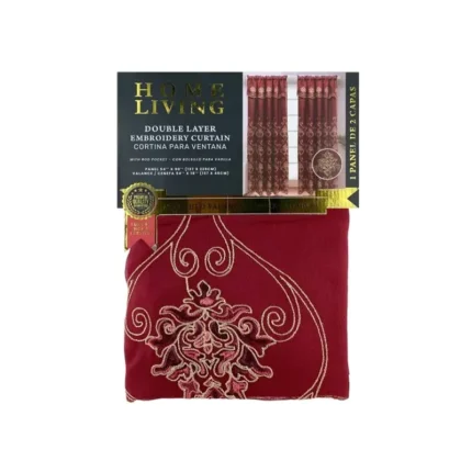 Home Living Double Layer Embroidery Curtain Burgundy 54×90 Inch