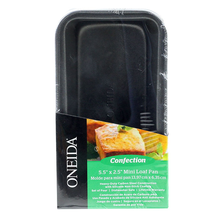 Oneida (35286), Confection Mini Metal Loaf Pans, Set of 4. Heavy Duty Carbon Steel Construction – Safe up to 400 Degrees.
