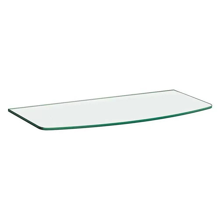 Convex Glass Line glass shelves look great alone or as part of a wall system. Create front edge wave look when used with Glass Line concave glass shelf as a wall decor system. Build an extended shelf system matching depths of other Glass Line shelves. Large radius front corners and shelf edges are polished to a brilliant finish.