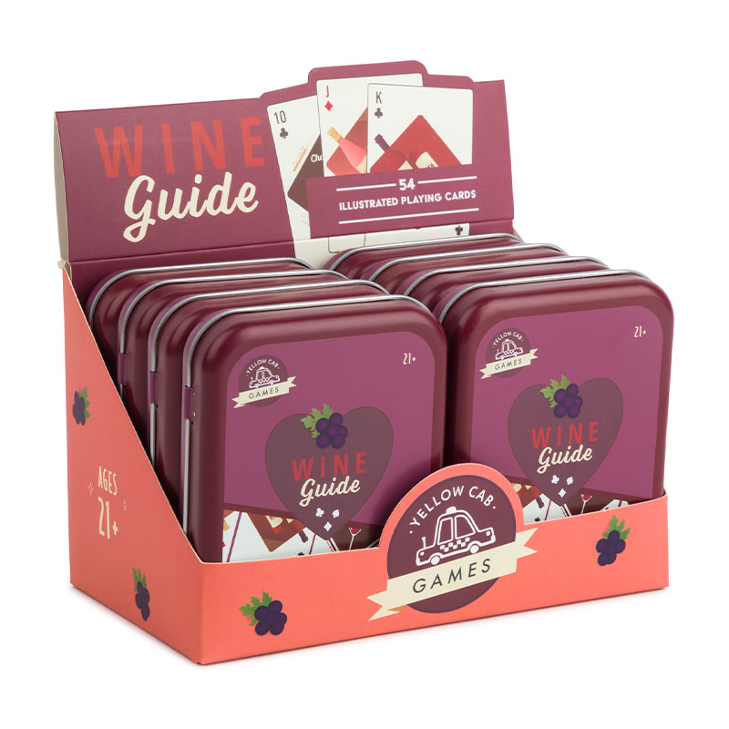 Make game night memorable with these unique playing cards. Whether you win or lose, these playing cards with wine designs make even a bad hand look good. Comes with a 2-piece metal tin travel case to take this deck of cards anywhere you go. Illustrated playing card. 21 and over.