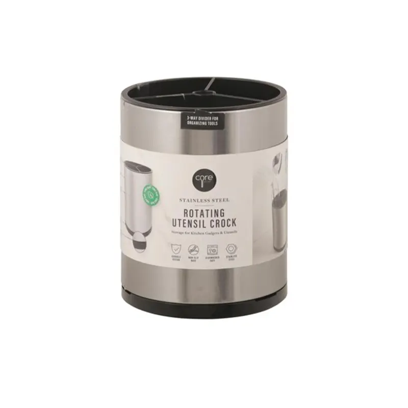 Elevate your kitchen organization with the Stainless Steel Rotating Utensil Crock, a perfect blend of sleek style and unmatched functionality. This utensil holder is thoughtfully crafted from high-quality stainless steel, ensuring a robust and enduring home for your essential kitchen gadgets and utensils. Its modern, polished finish adds a touch of sophistication to any kitchen countertop, making it both a practical and stylish choice for diverse kitchen aesthetics.