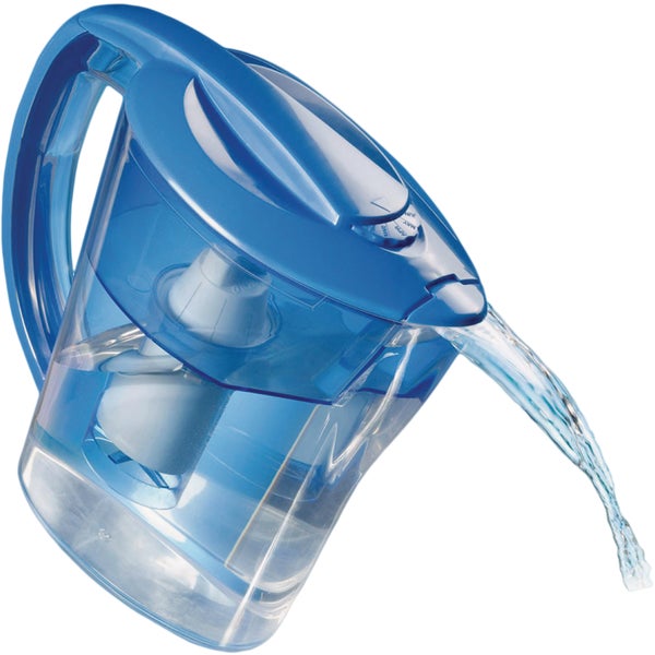 Designer oval pitcher water filter system removes 96% chlorine, 94% particulates and sediment, lead, mercury, copper, zinc, and reduces bad taste and odor.