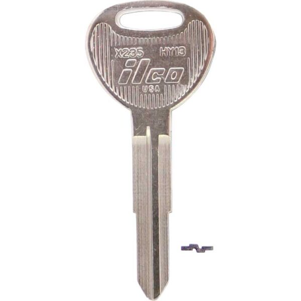 - Nickel-plated key blank.