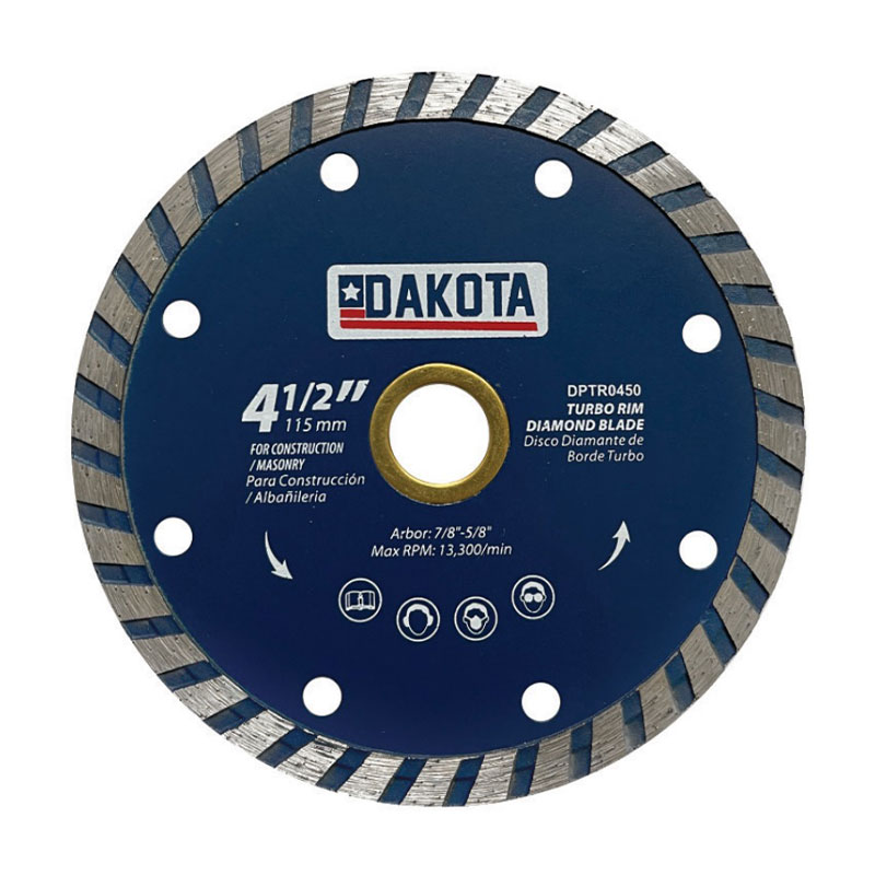 Dakota 4-1/2 Inch Turbo Diamond Blade is designed for durability and maximum cutting performance. They last longer than abrasive blades. For use on construction and masonry materials, block, brick, concrete, paver and stone.