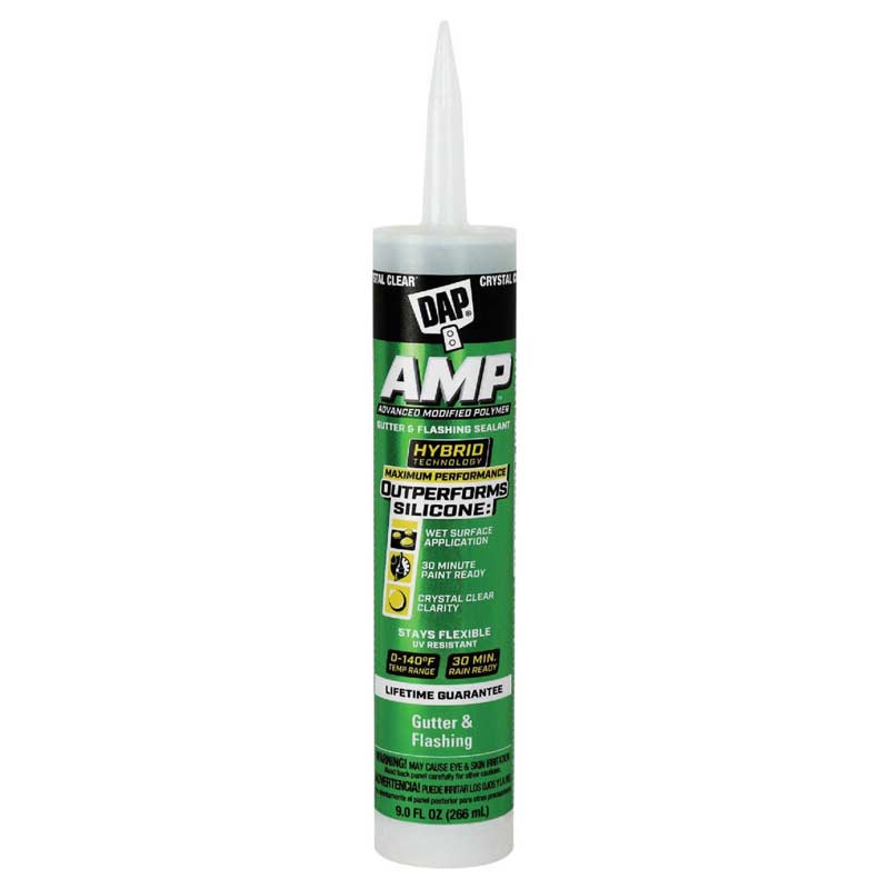 DAPs AMP Advanced Modified Polymer Gutter and Flashing Sealant provides a 100% weatherproof and waterproof seal with the ability to be applied on wet and damp surfaces. This sealant won’t crack or shrink and can withstand the expansion and contraction caused by temperature and weather fluctuations.